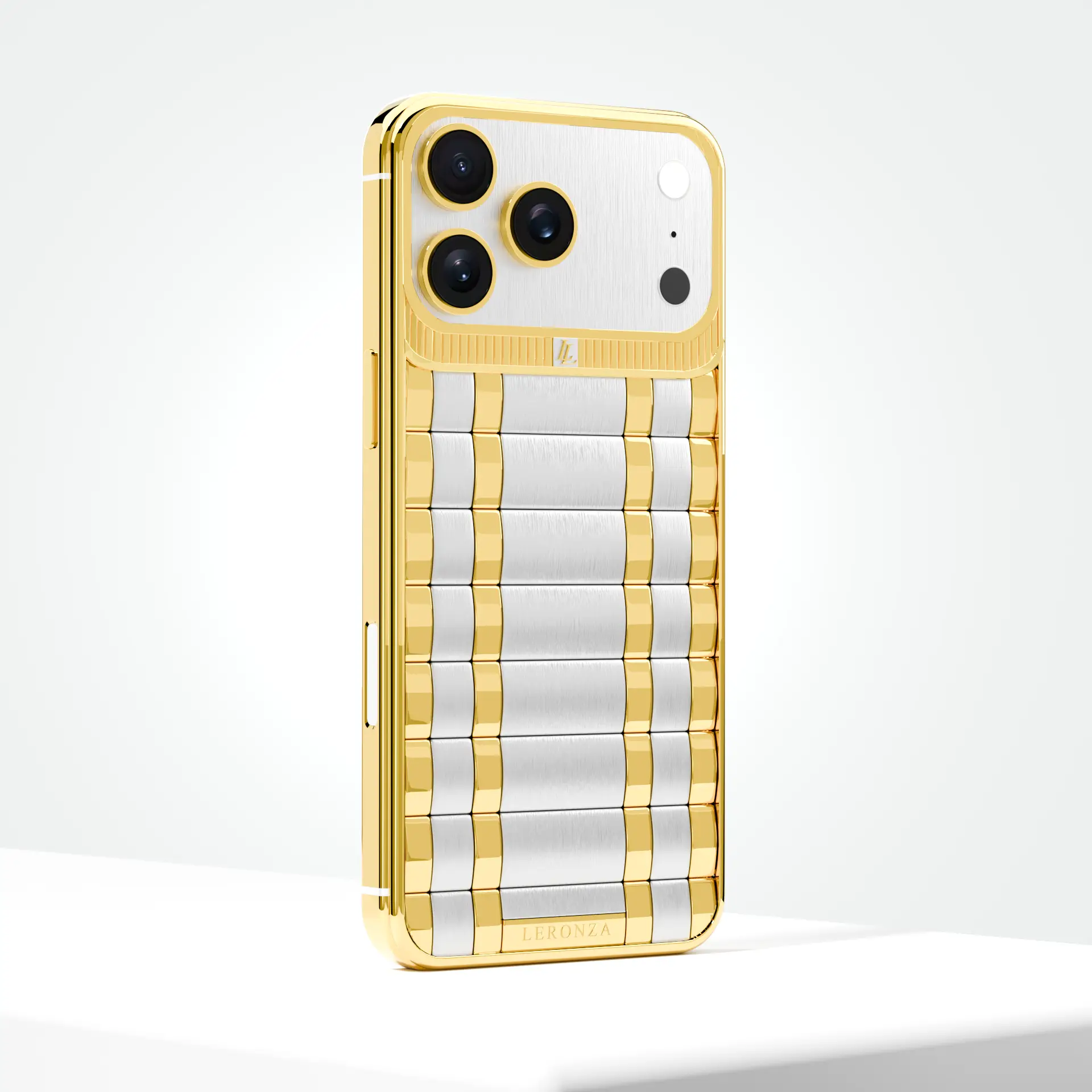 The Luxoro Edition redefines the language of luxury with a bold and artistic expression of craftsmanship. This elite iPhone 17 Pro & Pro Max features a sculpted back design with alternating vertical elements—each meticulously crafted in 18K Solid Gold and premium Silver. The dual-metal composition evokes harmony and contrast, making this piece a true work of art.