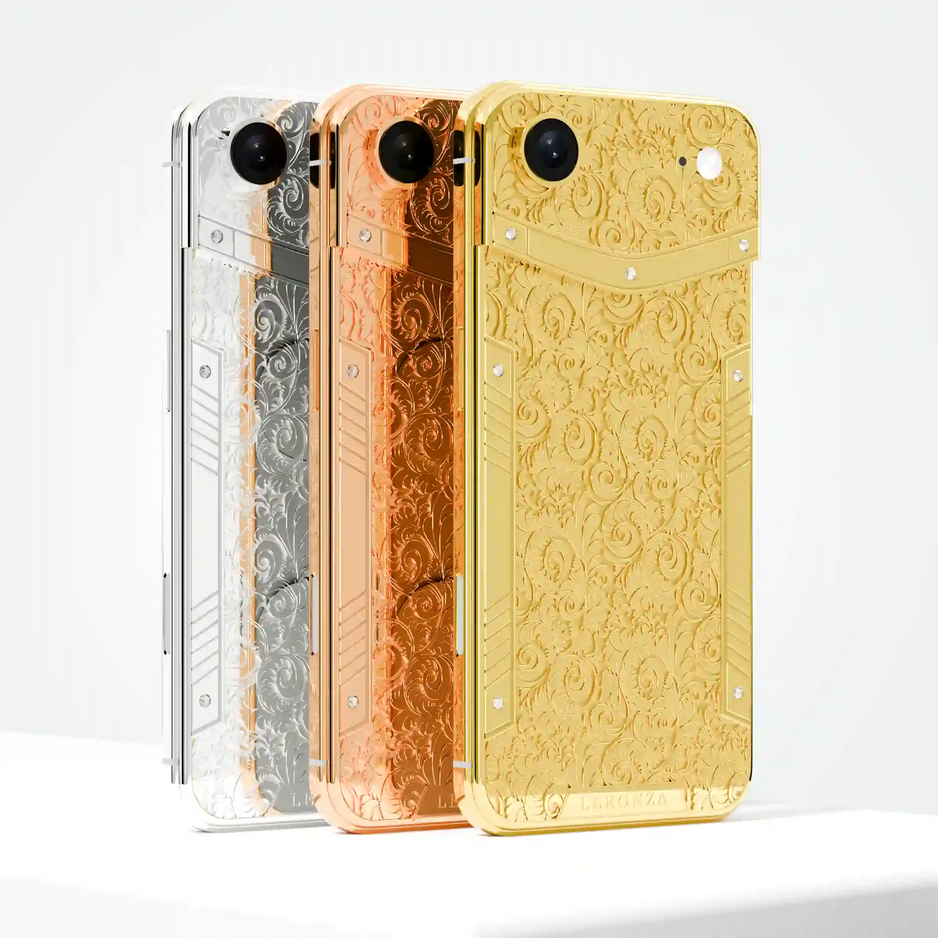 The Leronza 24K Gold Apple iPhone Air Flora is an embodiment of luxury and artistry, featuring world-class plating available in 24K Gold, Rose Gold, or Platinum. Each finish is meticulously applied with a thickness of 5 to 7 microns, ensuring durability and a premium feel. The standout feature of this model is the intricate flora design, inspired by baroque-style hand drawings, which gives the phone an air of elegance and classic beauty. The design is named "Flora" to capture the essence of its delicate and ornate patterns. To make your iPhone truly personal, you have the option to engrave your name or initials on the backplate or frame, adding a unique touch to your device.