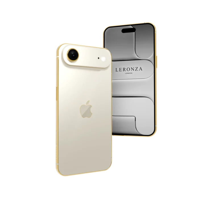 The Leronza 24K Gold iPhone Air Frame transforms the thinnest and lightest iPhone into a statement of refined luxury. Crafted with precision, the frame, bezel, and camera rings are plated in 24K gold, adding brilliance without compromising the sleek design of the device. For those seeking individuality, the frame can be engraved with your name or initials, making every iPhone Air as unique as its owner.