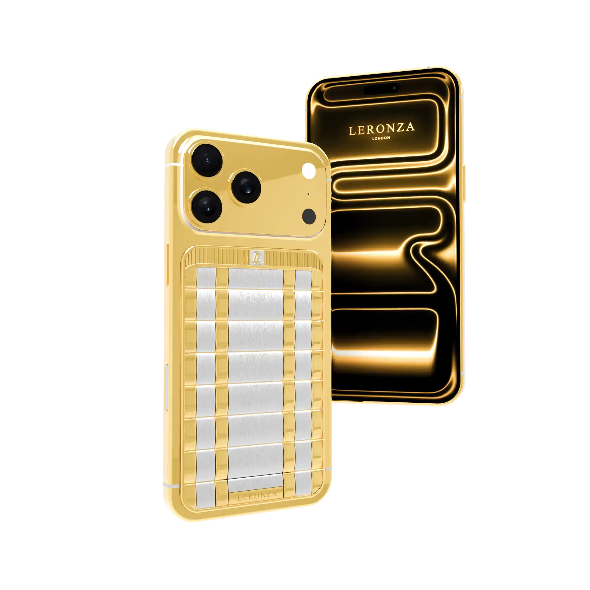 The Luxoro Edition redefines the language of luxury with a bold and artistic expression of craftsmanship. This elite iPhone 17 Pro & Pro Max features a sculpted back design with alternating vertical elements—each meticulously crafted in 18K Solid Gold and premium Silver. The dual-metal composition evokes harmony and contrast, making this piece a true work of art.