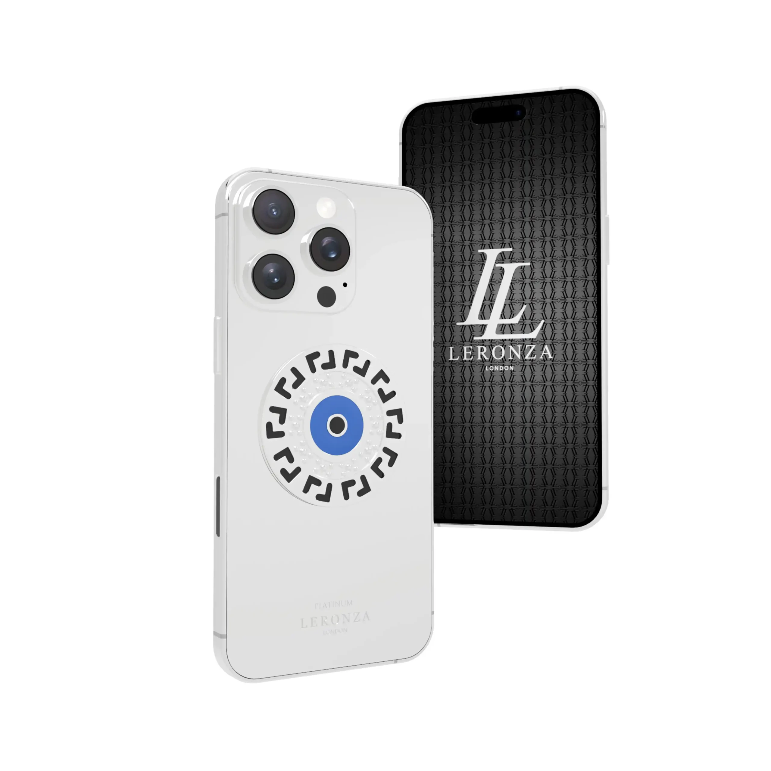Introducing the Leronza 24K Gold Apple iPhone 16 Pro and Pro Max Meandros Blessing Eye, a masterpiece of luxury and craftsmanship. This exclusive edition features world-class plating on both the case and backplate, available in three exquisite finishes: 24K Gold, Rose Gold, and Platinum. Each device is meticulously coated with 5 to 7 microns of precious metal, ensuring a lustrous and durable surface. Personalize your iPhone with your own design, name, photo, or initials engraved on the backplate, complemented by an Evil Eye Charm crafted from 20 grams of 18K Solid Gold and overlaid with a layer of 24K Gold. This unique combination not only adds a touch of personal elegance but also harmonizes perfectly with the Meandros Blessing Eye design.