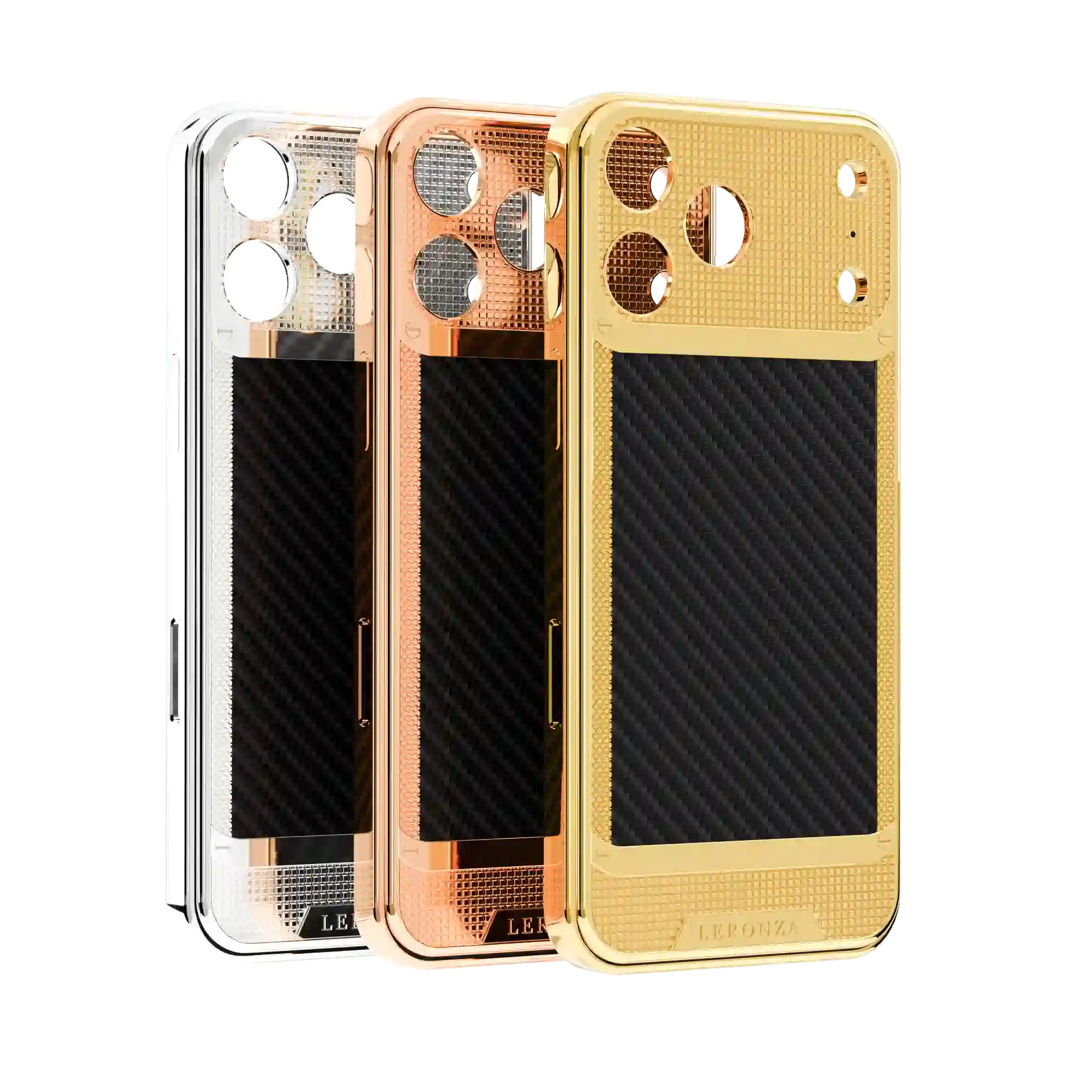 Experience luxury with the Leronza 24K Gold Apple iPhone Knots & CarbonFiber Case. Plated in 24K Gold and Platinum (5-7 microns thick), it exudes lasting shine and elegance. The design features delicate knots, symbolizing love with carbon fiber detailing adds modern sophistication with its sleek weave pattern. Personalize it by engraving your name or initials on the backplate or frame.