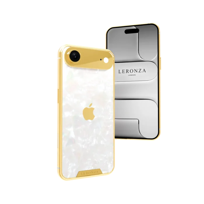 The Leronza 24K Gold iPhone Air Pearl Majesty Edition stands as the ultimate expression of luxury and craftsmanship. Its case and backplate are meticulously plated in three opulent finishes—24K Gold, Rose Gold, and Platinum—with a thickness of 5 to 7 microns, ensuring a radiant and enduring brilliance. Genuine Mother of Pearl inlays elevate the design, adding an air of timeless sophistication. Inspired by the iconic Majesty motif, this edition symbolizes good luck, strength, and power. For a bespoke touch, you can engrave your name or initials on the backplate or frame, making the iPhone Air a true reflection of your individuality.