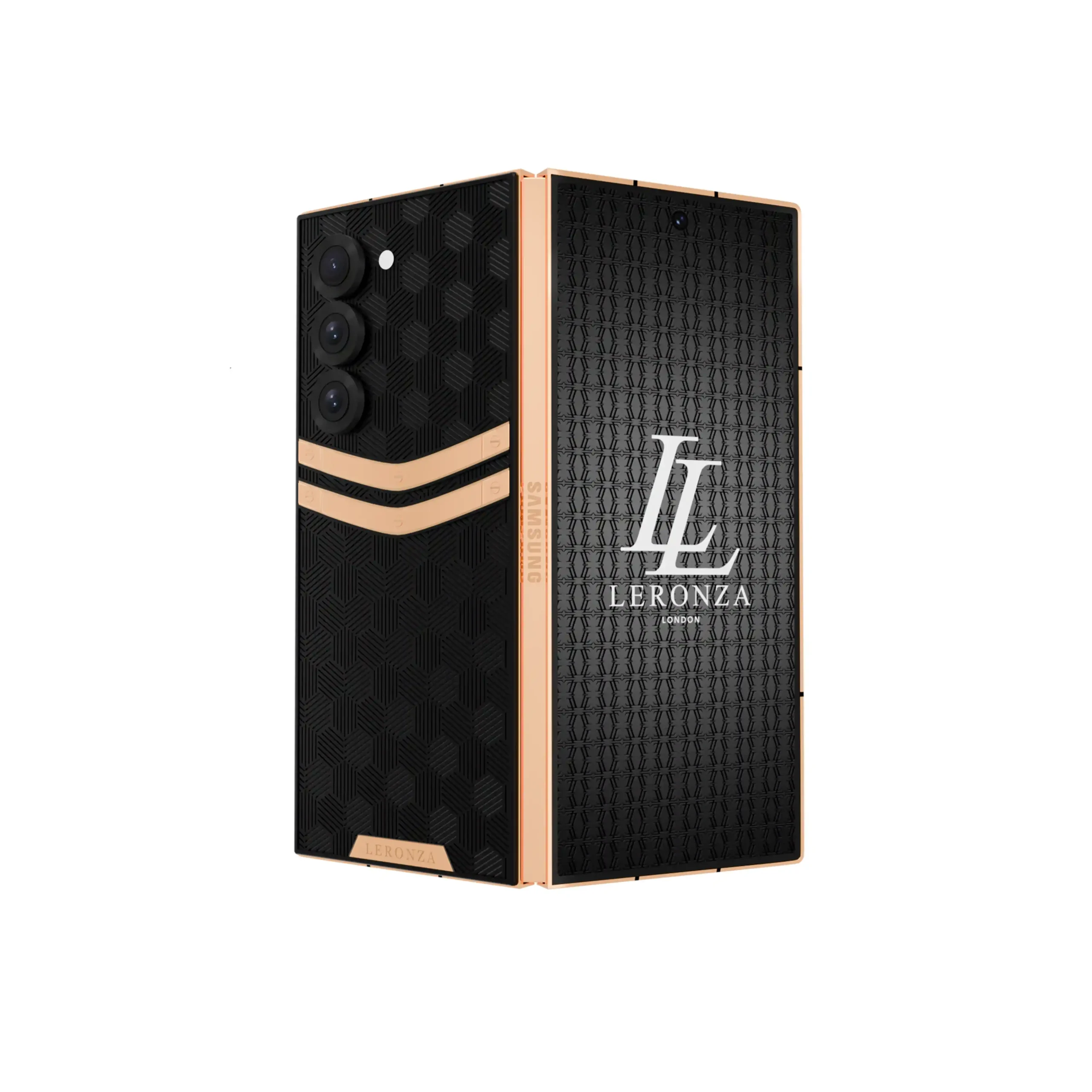 The Leronza 24K Gold Samsung Galaxy Z Fold7 Nucleus 2.0 Rhodium Edition represents the pinnacle of luxury and craftsmanship. The case features a Rhodium backplate, meticulously plated in six stunning colors: Verdant, Iron Grey, Noir, Royale Blue, Crimson Red, and Rose Fuchsia. Each hue is applied with a plating thickness of 5 to 7 microns, ensuring a vibrant, long-lasting finish. The design is further enhanced by 24K gold elements, which add a touch of opulence to the overall aesthetic. For those seeking personalization, there’s an option to engrave your name or initials on the backplate or frame, making this phone a true reflection of your unique style.