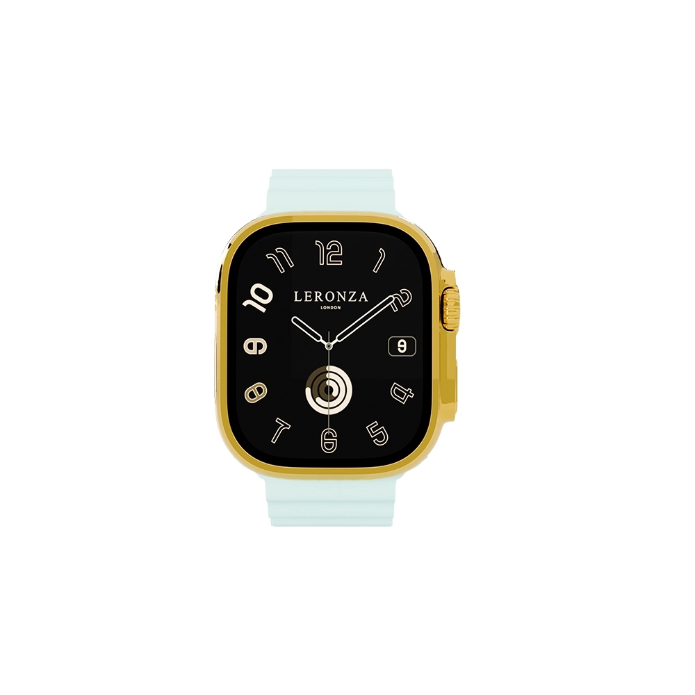 The 24K Gold Apple Watch Ultra 3 with Ice Blue Ocean Band stands out with its Infinite Faces finish, which is skillfully plated in three exquisite finishes: 24K Gold, Rose Gold, and Platinum. Each finish is applied with a thickness of 5 to 7 microns, offering not only a stunning visual appeal but also exceptional durability that enhances the luxurious feel of this timepiece.