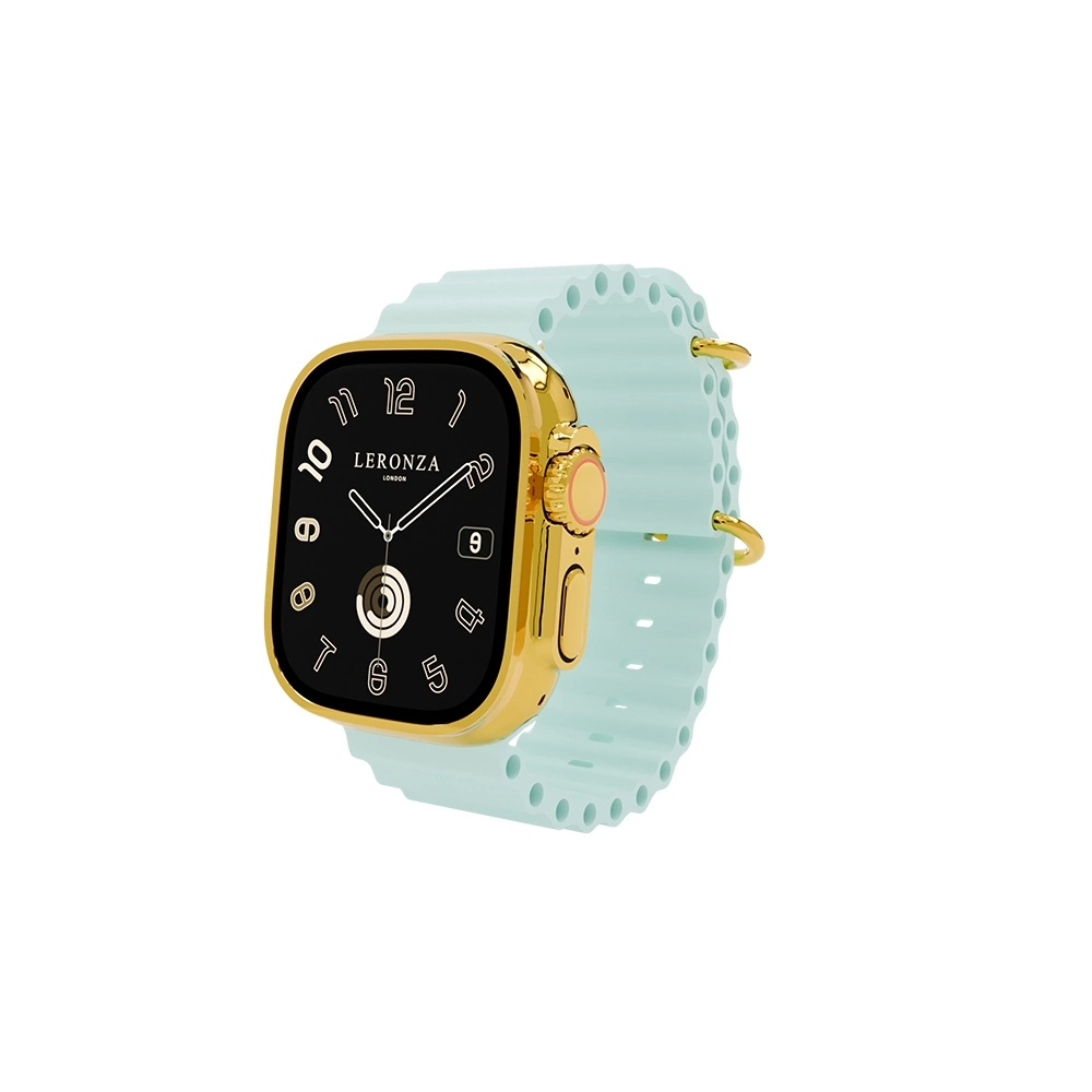 The Ice Blue Ocean Band is designed for both aesthetics and performance, making it the perfect companion for your adventures. Whether you're exploring the depths of the ocean or navigating urban environments, this band delivers comfort and a secure fit, complementing the rugged yet refined look of the Apple Watch Ultra 2. The deep, rich color of the Ice Blue Ocean Band pairs seamlessly with the gold-plated case, creating a striking contrast that's sure to turn heads.
