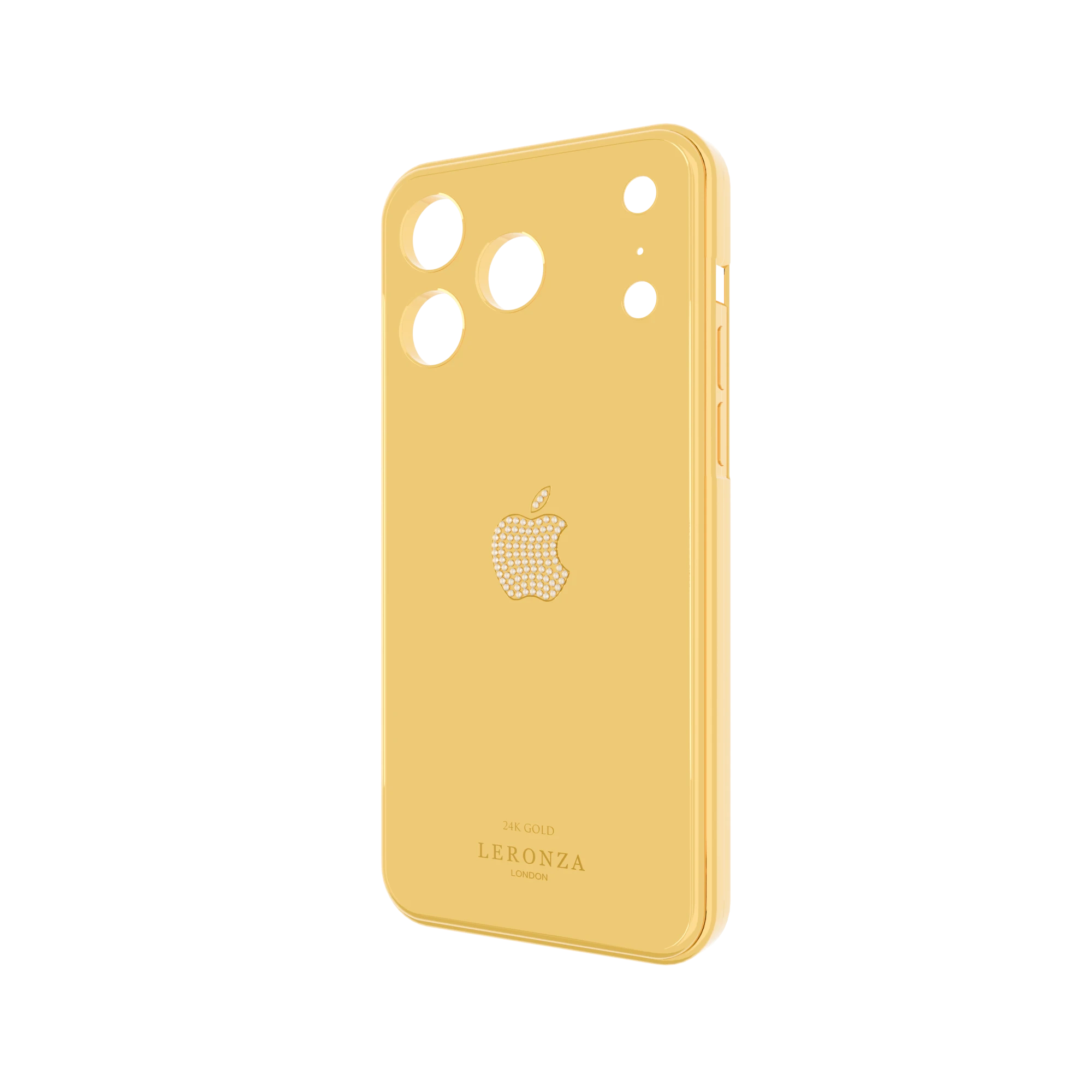 Experience luxury with the Leronza 24K Gold Apple iPhone simulated Diamond logo Iconix Case. Plated in 24K Gold and Platinum (5-7 microns thick), it exudes lasting shine and elegance. Exemplify luxury with its world-class plating and Apple logo aligned with simulated diamonds, creating a striking focal point of luxury.