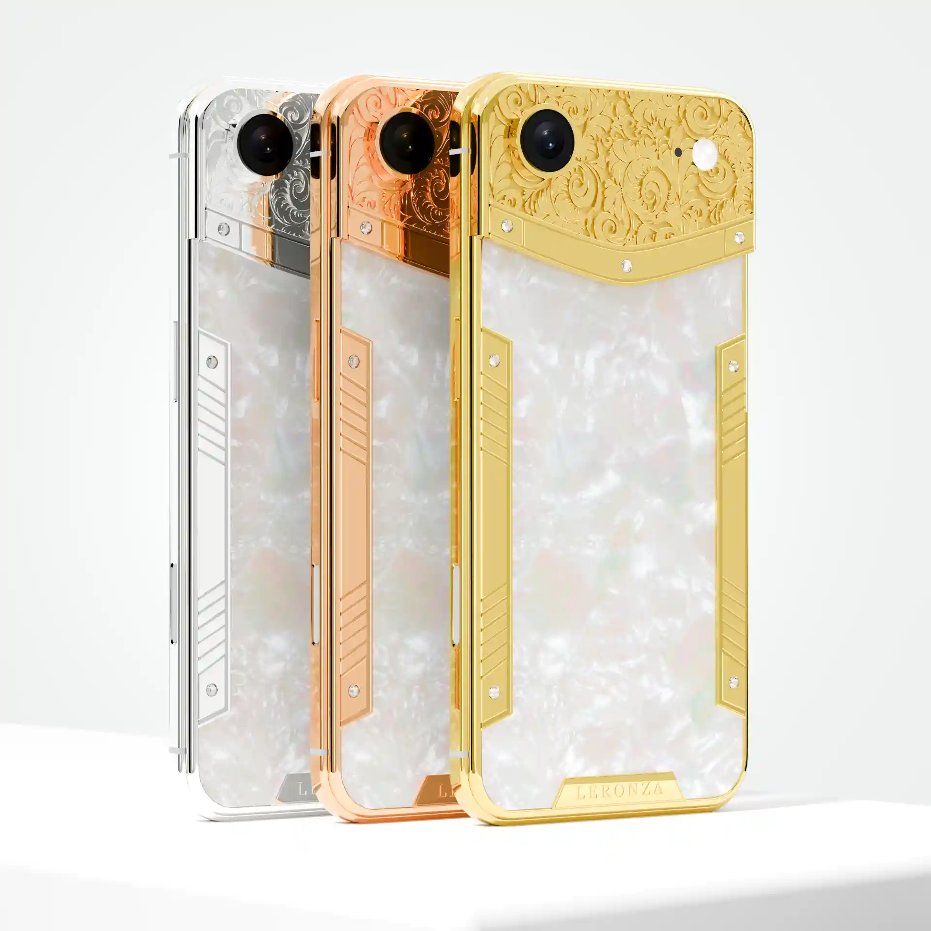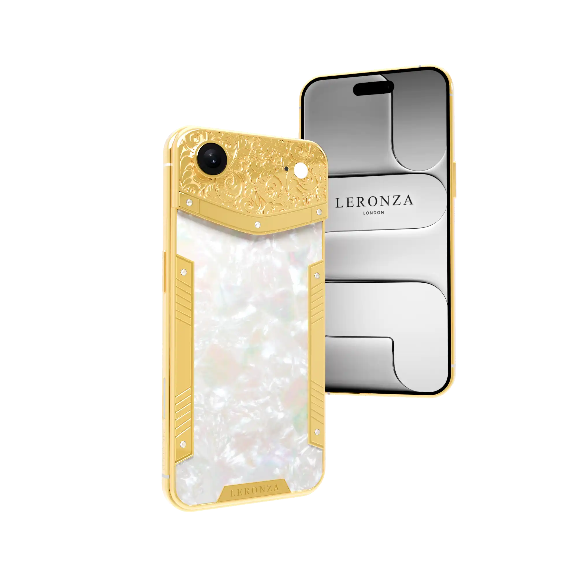 The Leronza 24K Gold Apple iPhone Air Pearl Royale Edition is a stunning fusion of luxury and artistry. The case and backplate are plated in three exquisite finishes—24K Gold, Rose Gold, and Platinum—with a thickness of 5 to 7 microns, ensuring a lustrous and durable surface. The design is further enhanced with real Mother of Pearl inlays, featuring a hand-drawn floral pattern inspired by the baroque style, named "Flora." This intricate design embodies the elegance and power of the baroque era, making the Royale Edition a true masterpiece. For a personalized touch, you can engrave your name or initials on the backplate or frame, adding a unique element to this luxurious iPhone.