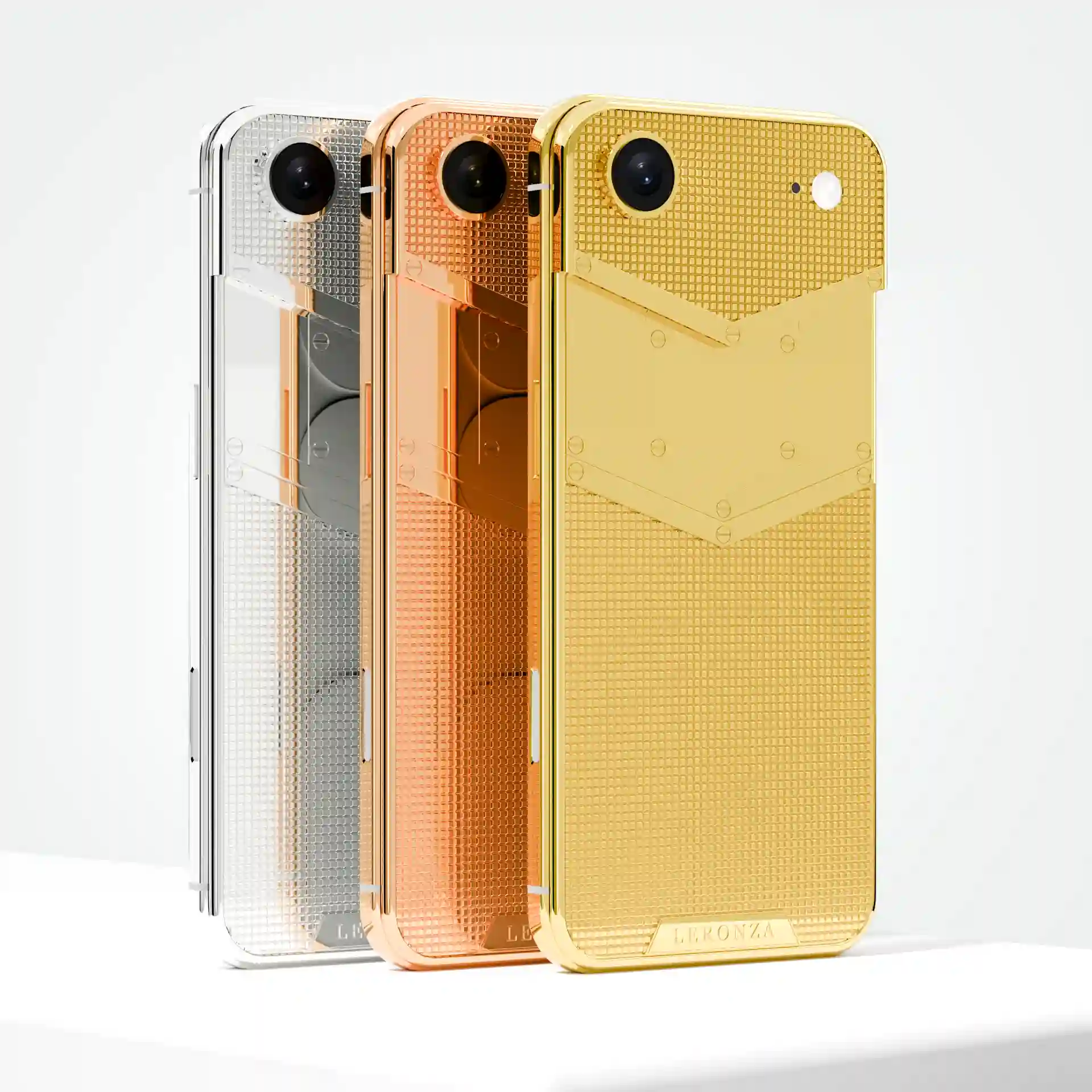 The Leronza 24K Gold iPhone Air Frame transforms the thinnest and lightest iPhone into a statement of refined luxury. Crafted with precision, the frame, bezel, and camera rings are plated in 24K gold, adding brilliance without compromising the sleek design of the device. For those seeking individuality, the frame can be engraved with your name or initials, making every iPhone Air as unique as its owner.