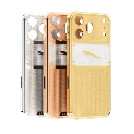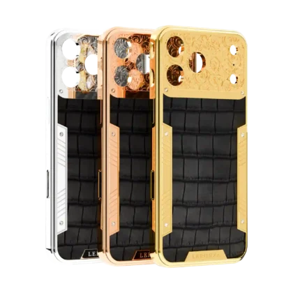 The case is crafted from genuine red ostrich leather, known for its unique texture and durability. This rare material is paired with a 24K gold-plated frame, providing a stunning contrast that enhances the luxurious appeal of your iPhone. The Leronza iPhone case is not just an accessory; it’s a statement of elegance and refinement.