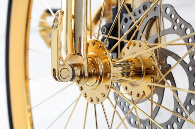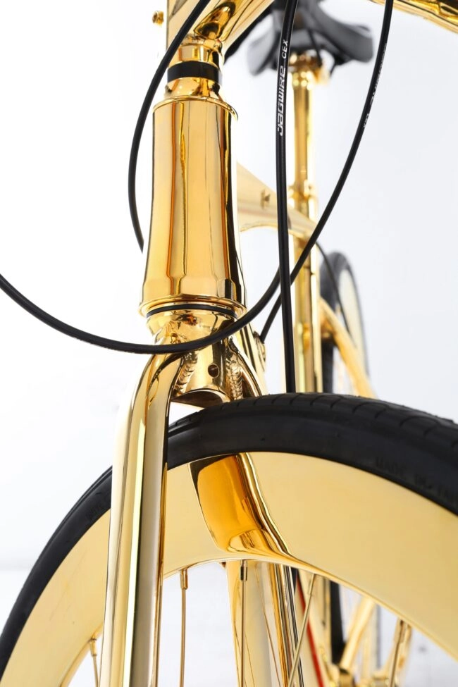 This extraordinary bike is adorned with pure 24K gold, exuding a radiant brilliance that captures the eye and commands attention. The gleaming gold finish sets this bike apart, making it a symbol of elegance and refinement.