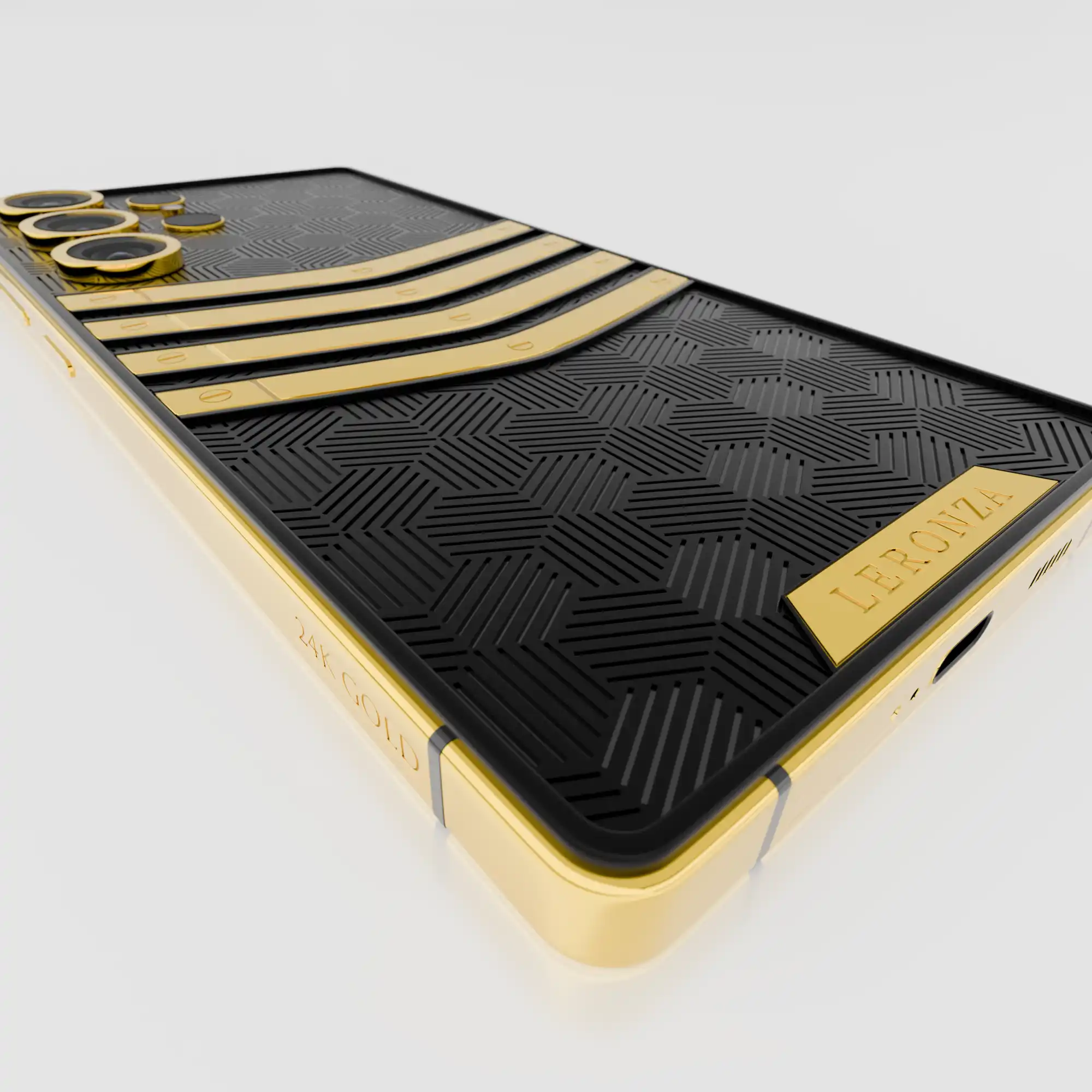 The Leronza 24K Gold Samsung Galazy S25 Ultra Nucleus 3.0 Rhodium Edition represents the pinnacle of luxury and craftsmanship. The case features a Rhodium backplate, meticulously plated in six stunning colors: Verdant, Iron Grey, Noir, Royale Blue, Crimson Red, and Rose Fuchsia. Each hue is applied with a plating thickness of 5 to 7 microns, ensuring a vibrant, long-lasting finish. The design is further enhanced by 24K gold elements, which add a touch of opulence to the overall aesthetic. For those seeking personalization, there’s an option to engrave your name or initials on the backplate or frame, making this phone a true reflection of your unique style.
