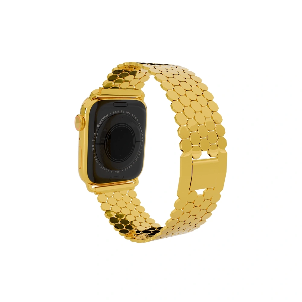 The 24K Gold Apple Watch Series 11 Heritage Strap is plated using a high-quality process available in three luxurious finishes: 24K Gold, Rose Gold, and Platinum. With a plating thickness of 5 to 7 microns, each watch case radiates elegance and durability. This meticulous process reflects the exceptional quality and sophistication that the Series 10 Heritage model represents, catering to those who appreciate refined luxury.