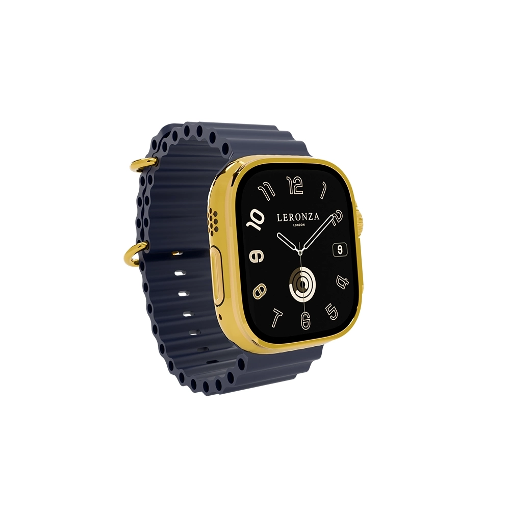 The 24K Gold Apple Watch Ultra 3 with Navy Ocean Band stands out with its Infinite Faces finish, which is skillfully plated in three exquisite finishes: 24K Gold, Rose Gold, and Platinum. Each finish is applied with a thickness of 5 to 7 microns, offering not only a stunning visual appeal but also exceptional durability that enhances the luxurious feel of this timepiece.